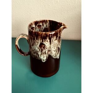 Vintage Pottery Stoneware Pitcher - Brown Salt Drip Glaze, Retro Dishware