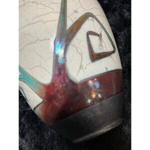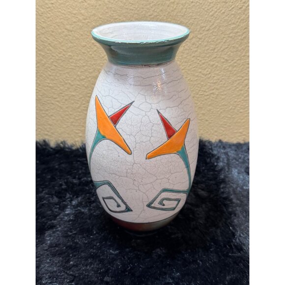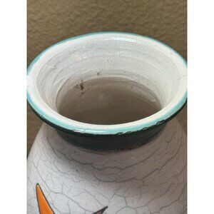 This ceramic vase combines artistry and function, featuring a crackle finish with hand-painted bird of paradise motifs. Stylish for modern or traditional decor.