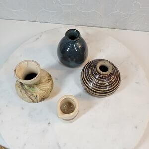 Vintage Lot Of 4 Mini Vases 3.5" Brown Green Marble Ceramic Art Pottery Retro Signed