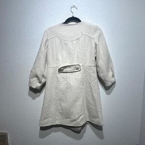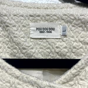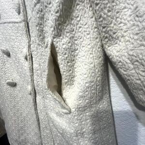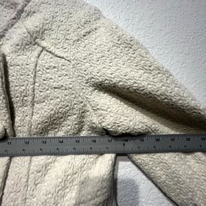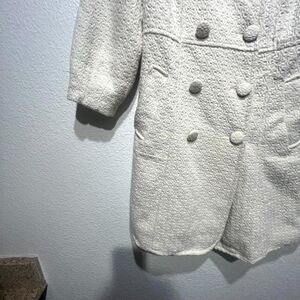 Vintage Pou Dou Dou Trench Coat Womens Large Beige Textured Printed Bow Shoulder