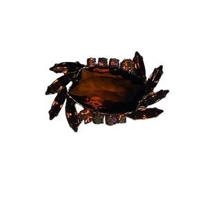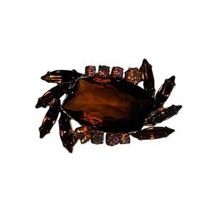 Rare Mid Century Poured Glass Brooch with a large amber Glass Crystal surrounded with small AB Glass Crystals, vintage from the 60's.
