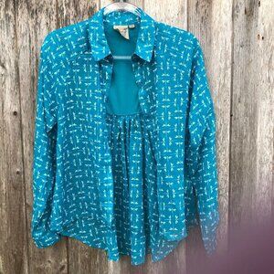 Vintage Pout Dragonfly Open Cutout Back Blue Button Down Blouse Top Medium