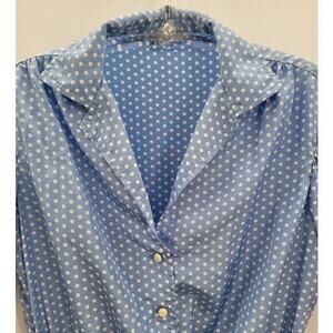 Vintage Powder Blue Polka Dot Short Sleeve Button Up Bodice Midi A-Line Dress