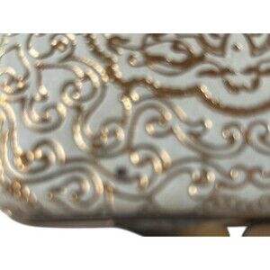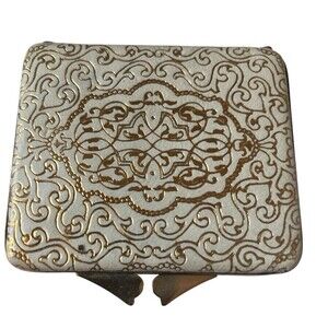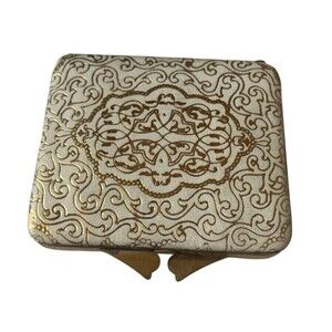 Vintage Powder Compact Hand Tooled Italian Leather Ivory Gold 3 x 2-3/4"