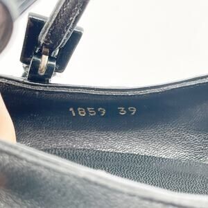 From Prada’s 1996 Fall/Winter collection, these rare Mary Jane heels feature antiqued deep navy blue leather with floral appliqué detailing, a rounded square toe, and a sculptural exaggerated block heel. Featured in the original campaign and held in The Met’s collection, this is a highly collectible archival design.