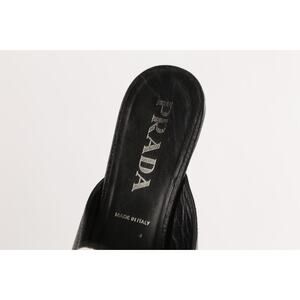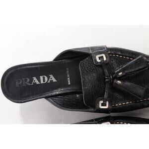 Vintage Prada Black Pebbled Leather Square Toe Mules Size 36