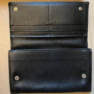 Vintage Prada Black Saffiano Leather Continental Wallet