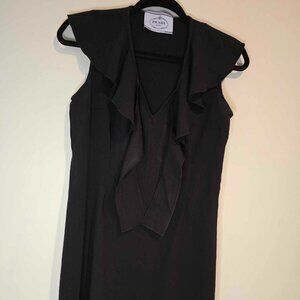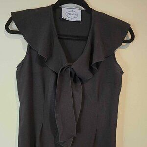 Vintage Prada Dress - Acetate Viscose - Ruffle Neckline Little Black Dress