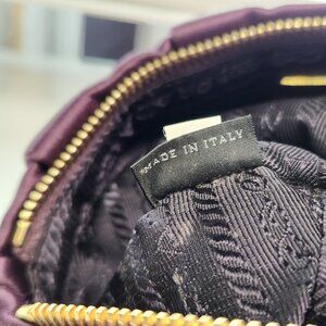 Vintage Prada Mini Wristlet Bag in Purple Eggplant Satin Fabric w Gold Hardware