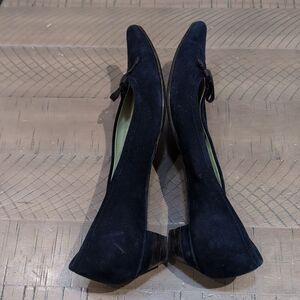 Vintage Prada Navy Blue Suede Pointed Kitten Heels Sz 37