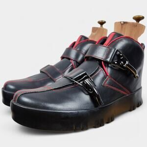Vintage Prada Red Stripe Platform Boots Black Mens 9 (US 10) Made in Italy