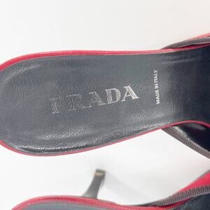 Vintage Prada Red Suede Tweed Bow Detail Pointed Toe Slide Heel Mule IT 36.5