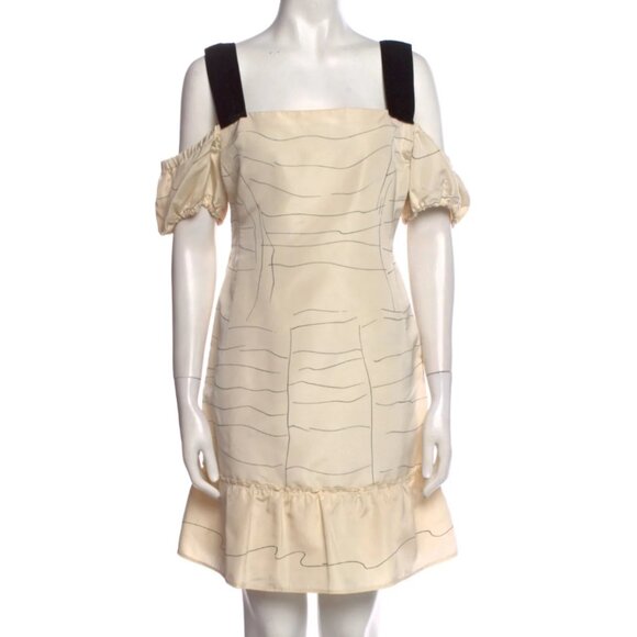 From the S/S 06 runway collection. Printed silk mini dress by Prada. Proof of purchase available for authenticity. Minor marks from storage. Might be able to be dry cleaned. Not worn by me. Size IT 46 or US 10-12. No stretch. No pockets. Side zip closure.
