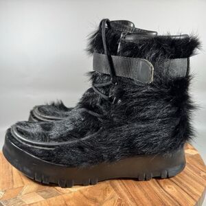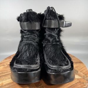 Vintage Prada Sport Black Ponyhair Boots Chunky Platform 90s Y2K Women 38.5 8.5