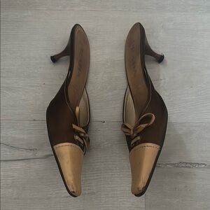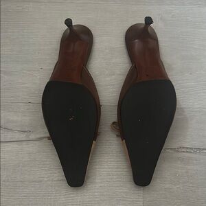 Vintage Prada Women's Leather Mules in Brown and Tan