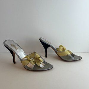 Vintage Prada Yellow Ribbon and Blue Velvet Heels 38 EU