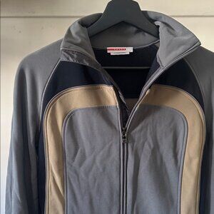 Vintage Prada athletic contrast panel scuba knit fleece fitted zip up jacket
