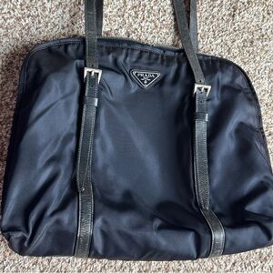 Vintage Prada navy dark blue nylon handle shoulder bag