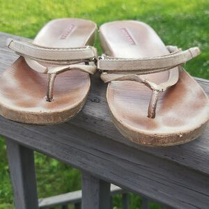 Vintage Prada Gold Thong Sandals Size 39.5 | Logo Sole