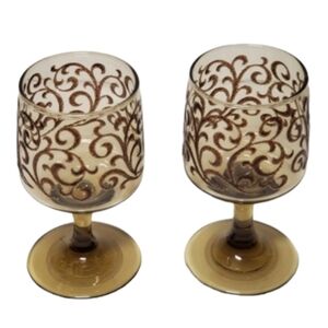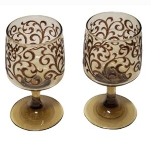 Excellent pre owned condition. Vintage Prado Brown Libbey Glass Co Brown Raised Swirl Tawny Smoked Set of 6. 1970s vintage Libbey Prado pattern tawny brown glasses. 5 1/4" tall. No chips stratches or cracks Made in the USA