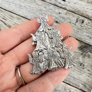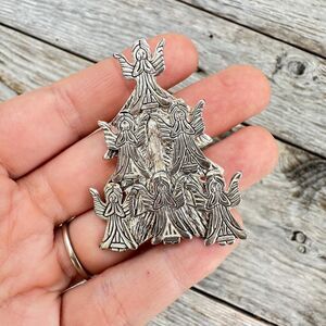 Vintage Praying Angel Tree Angel Christmas Tree Brooch Pendant Silver Angel