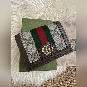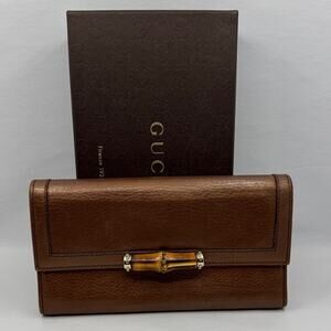 This is a pre-owned vintage Gucci Armory Collection long wallet in the classic GG monogram coated canvas with brown leather trim and the signature red and green web stripe.