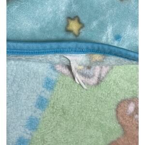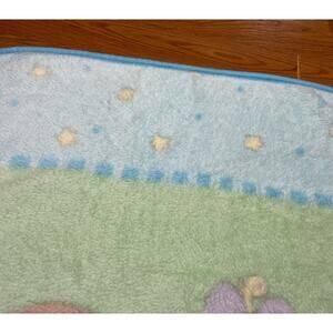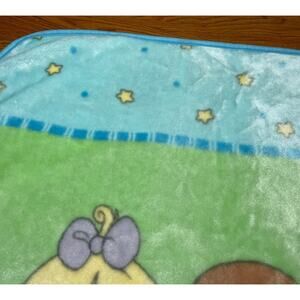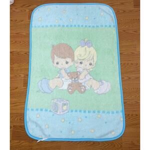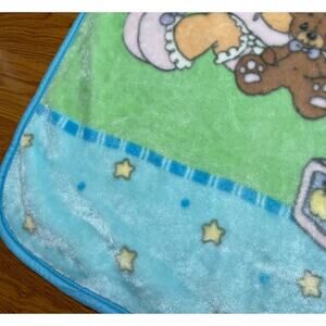 Vintage Precious Moments Baby Blanket Fleece Plush Green Blue Boy Girl Stars