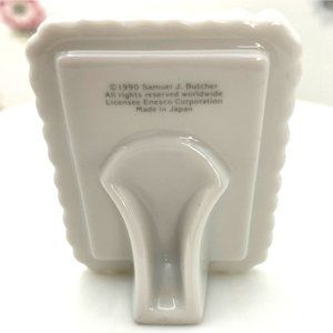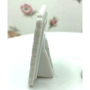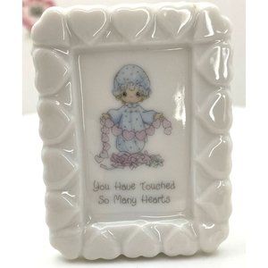 This lot of 2 precious moments items features a miniature picture frame and a miniature bell. Both feature a little girl holding a garland of hearts with the saying "You have touched so many hearts". Made in Japan, 1990 by Samuel J Butcher for Enesco.