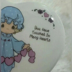 Vintage 1994 Precious Moments Heart Trinket Box Jewelry Holder. You’ve touched so many hearts ceramic heart shaped box. One small chip to the top and as shown in pics but cannot be seen with lid on. Measurements in pics, smoke & pet free home.