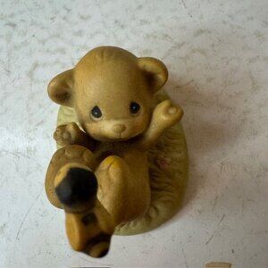 This delightful figurine from Precious Moments depicts an adorable bear playing with a bumblebee. Crafted with intricate details, it adds charm to any collection.