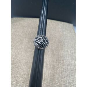 Vintage Premier Design Zebra Silver Tone & Black Enamel Statement Ring Size 8