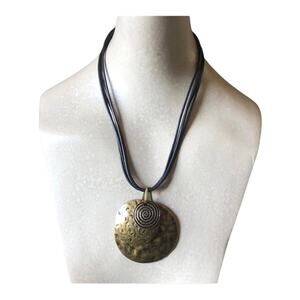 Vintage Premier Designs Black Multi-Cord Brass Tone Three Round Pendant Necklace