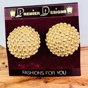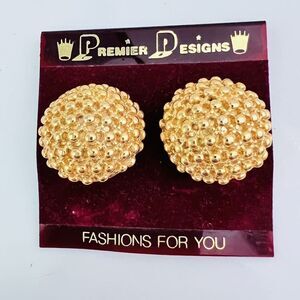 Vintage Premier Designs Earrings Large Spiked Dome Brutalist Gold Clip On PD. Nice preowned Condition without notable flaws or damage.