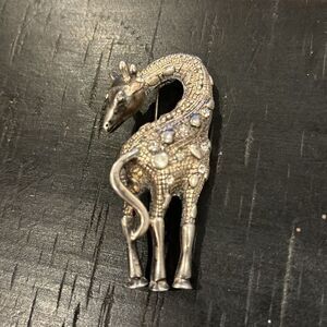 Vintage Premier Designs Signed Silver Rhinestone Giraffe Brooch Jewelry