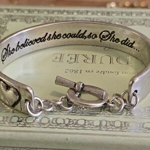 Vintage Premier Designs hammered cuff bracelet with inspirational message