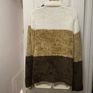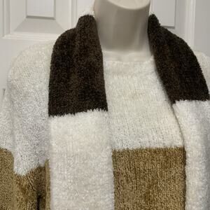 vintage sweater, chenille knit, detachable scarf sweater, Premier International, 90s Y2K, soft fuzzy top, cozy neutral colorblock, fall winter fashion, rare vintage find, retro women’s sweater