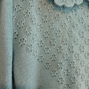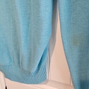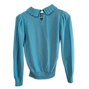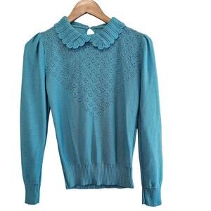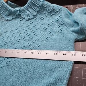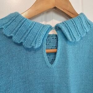 Vintage Preppy Sweater Women Size Small Blue 80s Knit Prairie Ruffle Collar Twee