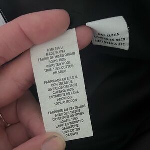 Red black and white mix of plaid pattern in tweed material. 2 pockets and single breasted. Notch collar. No flaws