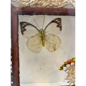 Vintage Real Butterfly Corn Seed Bean round Lucite Trivet Hot pad