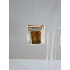 Vintage pressed flower earrings Talleres Lagunas LTT sterling silver resin - 25.44mm x 20.68mm