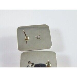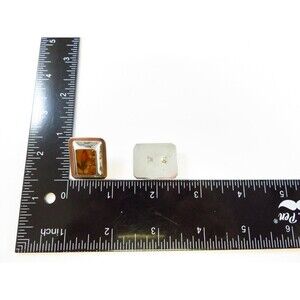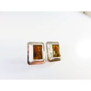 This vintage earring set features genuine pressed flowers encased in amber-toned resin, framed in rectangular sterling silver settings. Made in the Taxco, Mexico tradition, these earrings are signed by Talleres Lagunas with the hallmark "LTT" and "0.925". Each earring has a post back with butterfly closure. A distinctive and rare example of mid-20th century floral resin jewelry by Talleres Lagunas.