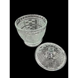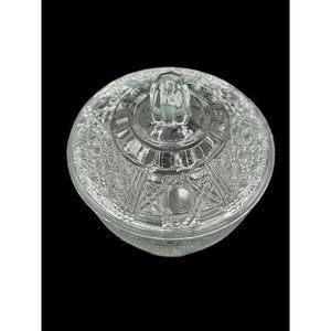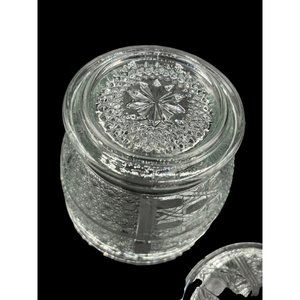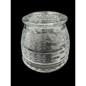 Nice vintage piece. The edge of the lid has some small flea bite chips but other then that this is in very good condition please see photos . Measures 4 1/4" Diameter x 6" Tall with lid
