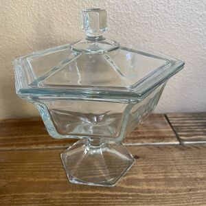 Vintage Pressed Glass Hexagon Shaped Candy Dish with Lid
