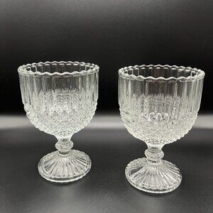 Vintage Pressed Glass MCM Goblets Diamond Point Colonial Revival Footed Set 2