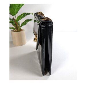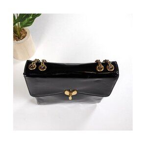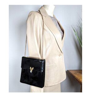 Vintage Prestige shoulder bag purse patent black w/ gold details and chain strap