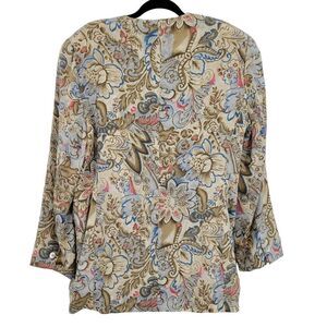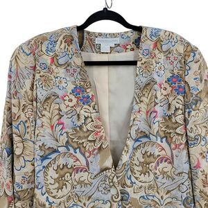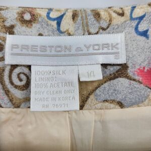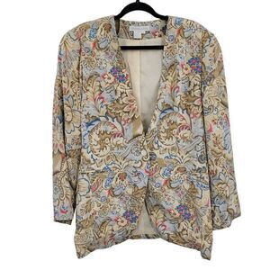 Vintage Preston & York Blazer 14 Cream Blue Paisley Single Breasted Mid Thigh