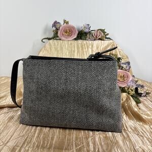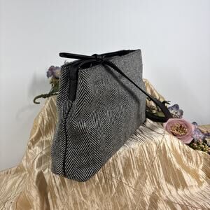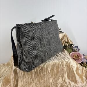 Vintage Preston & York Shoulder Bag Black & White Tweed Faux Leather Strap Purse