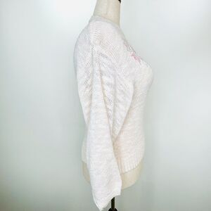 Vintage Pretense Sweater Women's Large Pink White Knit Barbiecore Grandma Preppy Academia Business Casual Office Floral 80s