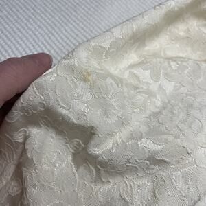 GUC for spot on left arm (pictured) and chest seam on left looking like it has some type of peach color on it. Very hard to notice and untreated. #vintage #lace #velvet #dressy