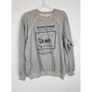 Vintage Pretty Good Pig Chow Sweatshirt Mens 2XL Gray Sioux City Feed Mill Iowa 90s